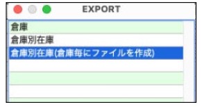 2.倉庫一覧画面から「EXPORT」ボタンをクリックし、「倉庫別在庫(倉庫毎にファイルを作成)」を選択します。