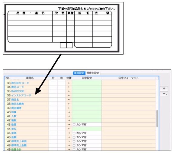 ●「項目名」=青色の項目は、売上明細部分の印刷です。