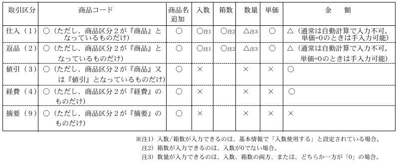 ●値引率は取引区分『3』が入力されたときしか入力できません。