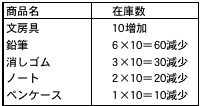 (手順3)セット商品を作ったとき、[仕入管理]「日次」メニューから、「セット伝票入力」を行います。ここで、それぞれの商品の在庫数が自動計算されます。「文房具セット」を10セット作ったときの在庫の動きは次のようになります。