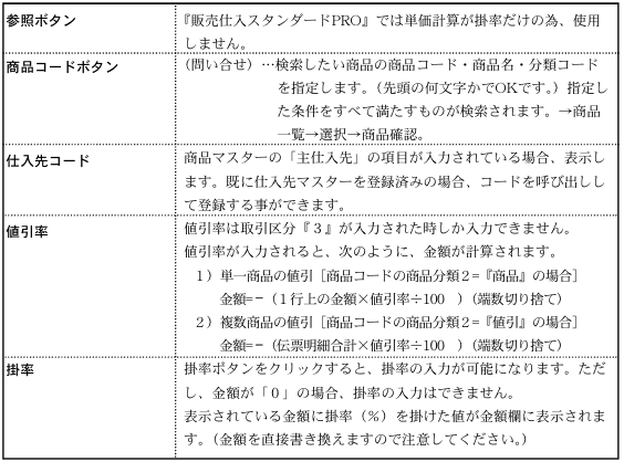 つまり、単一商品の値引の場合は必ず同じ商品の明細が2行(以上)並び、値引は2行目以降に入 力されると考える為、単一商品の値引率を計算する時は、1行上の金額を元にして計算します。