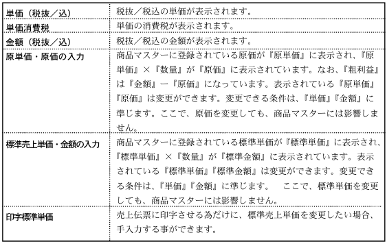 ※対象になるのは、その伝票の得意先と、最後に入力した商品です。別の商品、得意先の単価実績を見たいときは、コードを手入力してください、尚、売上伝票訂正画面でも参照できます。