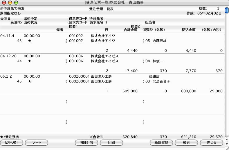 3.検索条件を満たす受注伝票を一覧表示します。