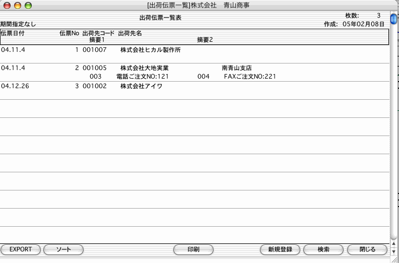 3.検索条件を満たす出荷伝票を一覧表示します。