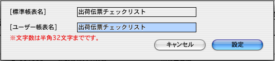 選択された帳票名を表示します。この画面で帳票名称の変更ができます。