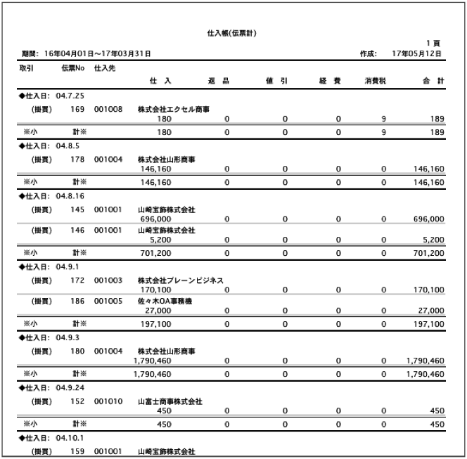 【仕入帳(伝票計)印刷】