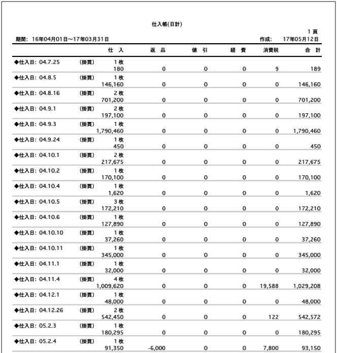 【仕入帳(日計)印刷】