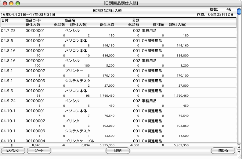 仕入帳(仕入帳/日別商品別仕入帳)