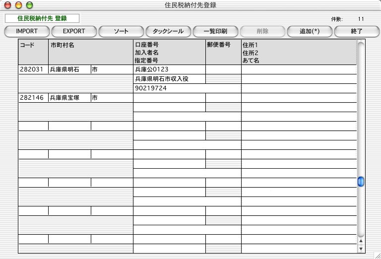 住民税一覧表(社員の給与から控除された住民税を市区町村別に集計をとる)を出力する場合、納付先を登録して下さい。社員情報より先に登録してください。