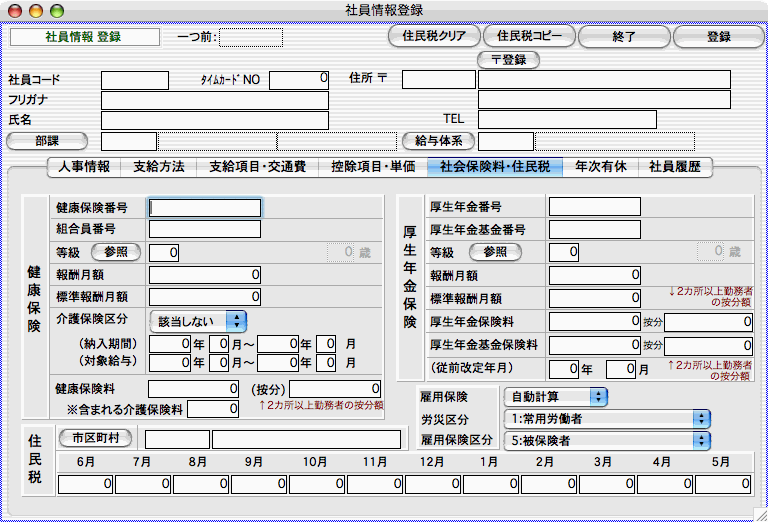 「社会保険料・住民税」タブをクリックすると、 社会保険料・住民のページが表示されます。