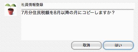 6月から順に住民税額を入力します。7月の住民税を入力後、tabキーをクリックすると、下記ダイアログが表示されます。8月以降も同じ金額であれば、「はい」をクリックします。