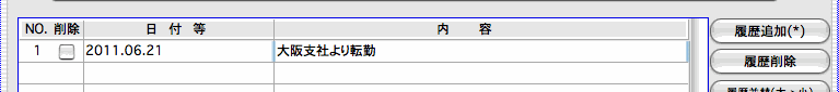 「履歴追加」ボタンをクリックすると、1行追加されます。日付等、内容を入力します。