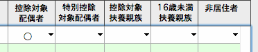 2.次に「控除対象配偶者」「特別控除対象配偶者」「控除対象扶養親族」「16歳未満扶養親族」のうち、該当する項目に「○」を入力(選択)します。