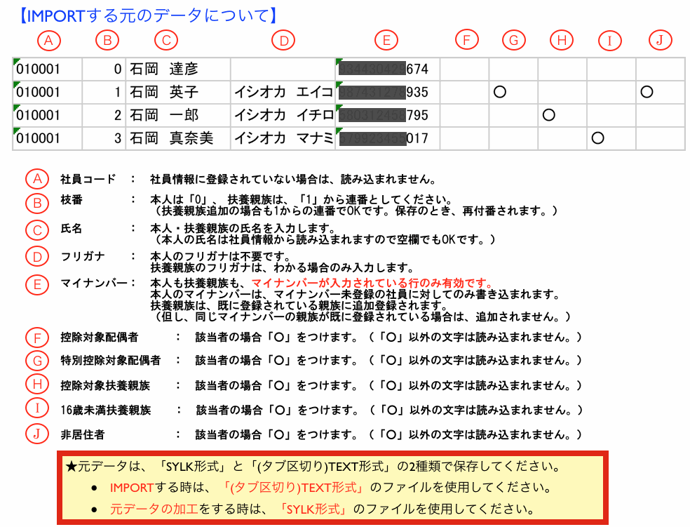 ・元データにマイナンバーが入力されていない扶養親族のデータは、追加されません。