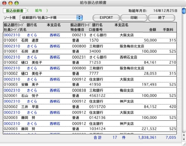 ★メニューボタンから「給与振込依頼書」を選択するのでなく、給与一覧から「帳表出力」ボタンで、引き続き出力することも可能です。(QP13012参照)