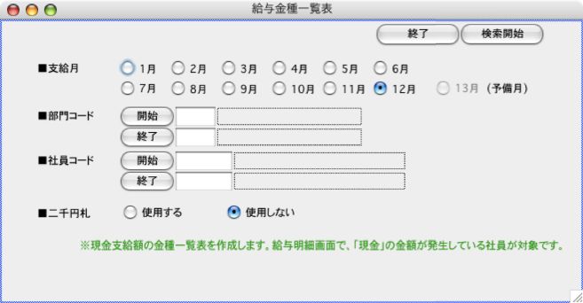 3.「給与金種一覧表」が画面に表示されます。