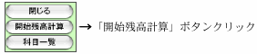 「開始残高試算表印刷」で、印刷した試算表でチェックをするか、「確認」ボタンで、もう一度開始残高登録画面を表示します。 残高修正入力後、再度"開始残高計算"ボタンをクリックして再計算を行います。(A)の画面を表示するまで、再入力を繰り返します。