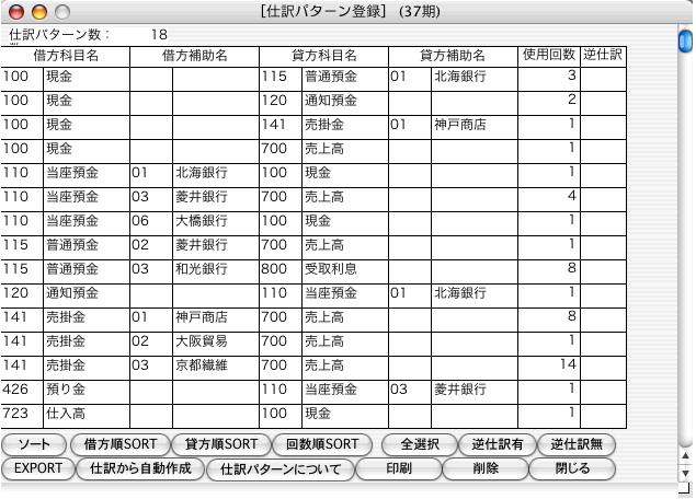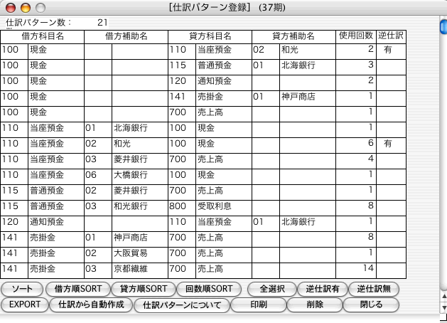 ●仕訳パターン登録