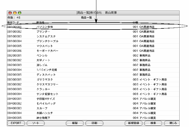 商品の確認・変更・削除は、その商品を一覧からダブルクリックして変更画面で操作します。