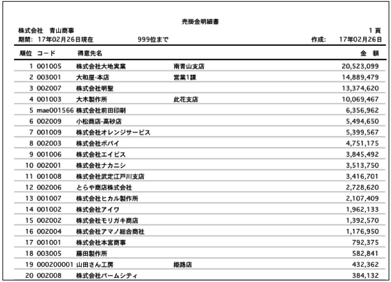 2.売掛金明細書が表示されます。