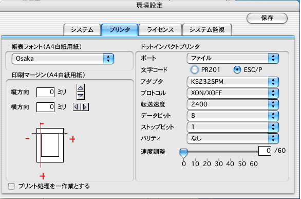 印刷帳表フォントやマージンの設定を行います。詳細は基本操作「プリンタ設定」を御覧ください。