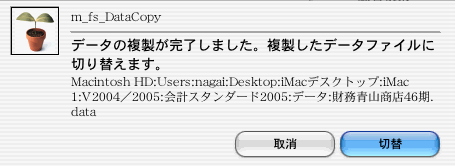 複製したデータに切替える旨のメッセージを表示します。