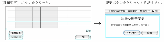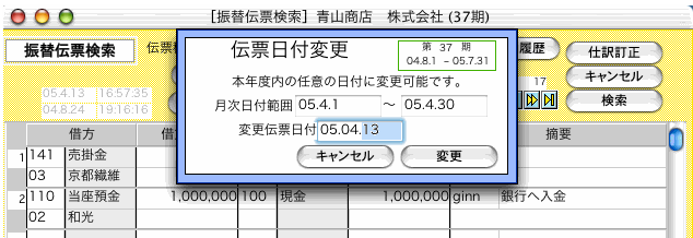 それぞれの変更画面で「変更」ボタンをクリックした時点で、仕訳の訂正(日付/番号)は行われます。