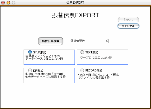 ■EXPORTする伝票ファイルは、「伝票検索」と同じ方法で選びます。(伝票検索参照)
