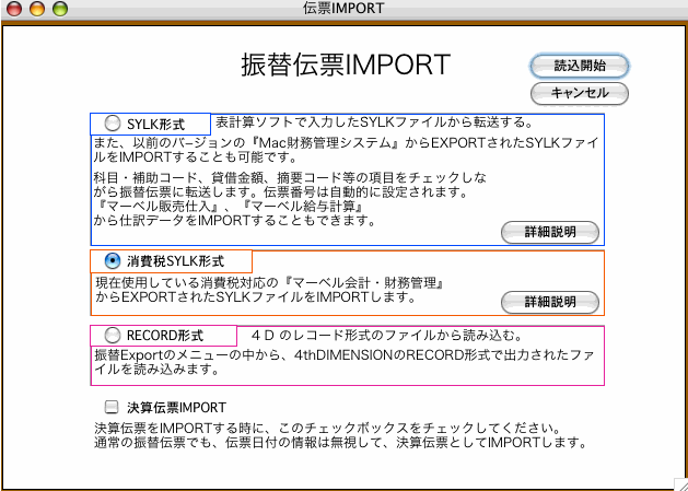 伝票の読込みは「環境設定」で読込み形式をSYLK形式に設定します。