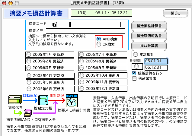 操作は、財務メニュー「摘要損益計算書」とほとんど同じです。