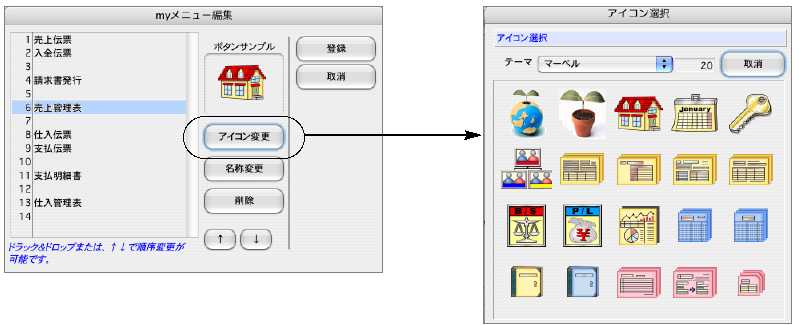 アイコン選択画面が表示されますので、選択クリックします。選択すると、元の画面に戻りますので、「登録」ボタンをクリックし確定します。