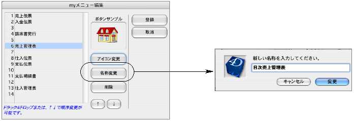 名称登録画面が表示されますので、新しい名称を入力し、変更ボタンをクリックします。
