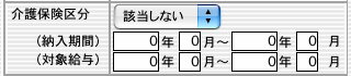 「介護保険区分」(該当する・該当しない・適用除外)が、「適用除外」でない社員は、(生年月日を基に) 介護保険に該当する期間の年月が自動表示されます。 該当者の健康保険料には、介護保険料も含んだ金額が表示されます。社員情報新規登録時は、最初に入力する給与の月を基準にして、「介護保険区分」を設定してください。