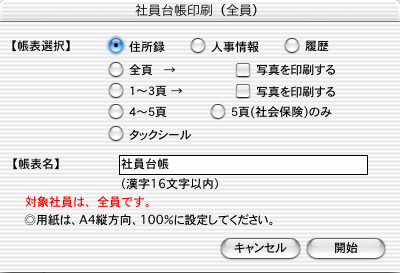 社員情報登録画面の4〜6頁の台帳を印刷します。