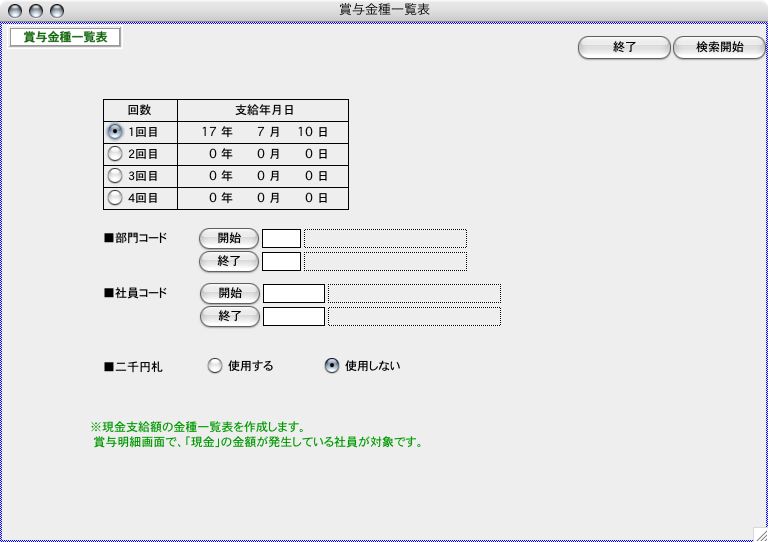 3.「賞与金種一覧表」が画面に表示されます。