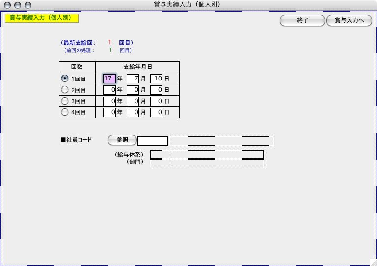 9.賞与実績入力(個人別)