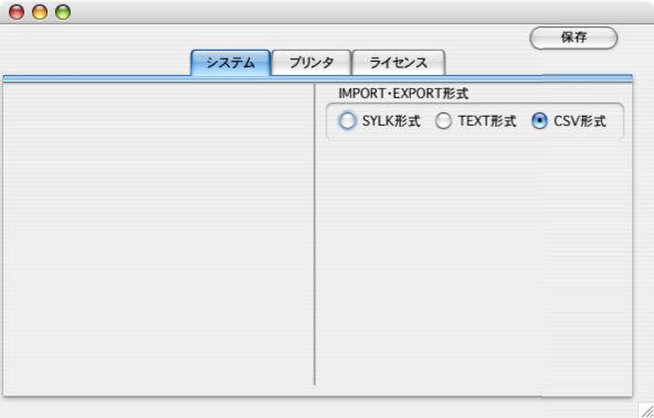 1.「設定」タブの「環境設定」から、IMPORT・EXPORT形式を「CSV」に変更します。