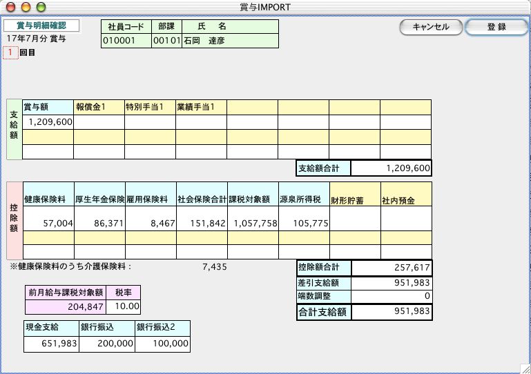 6.読込まれた賞与明細データの一覧が表示されます。ここで、「データ保存」ボタンをクリックすると、当月の 賞与明細データとして保存されます。(終了ボタンで終了した場合は、保存されません。)