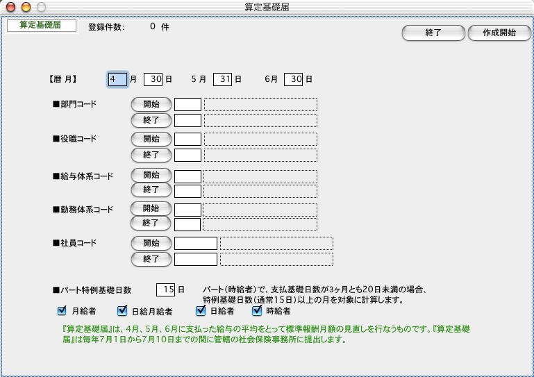 .算定基礎届データが作成され、表示されます。