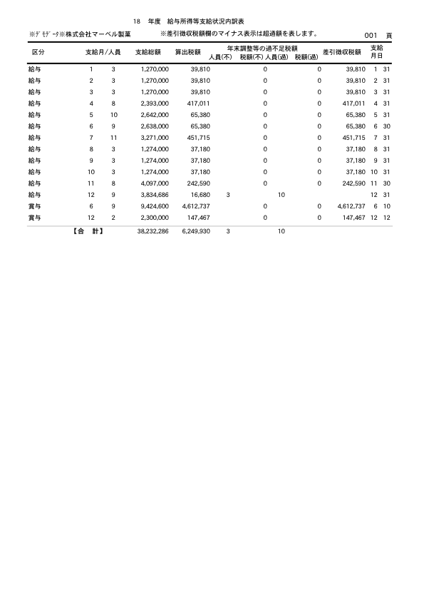 税務署に提出する「合計表」の、(5)給与所得等支給状況内訳表に相当する帳表です。