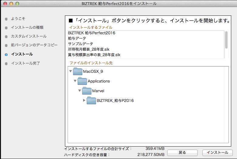 6.インストールするファイル及びファイルのインストール先が表示されます。
