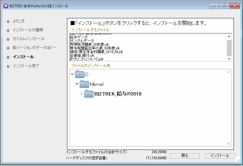 6.インストールするファイル及びファイルのインストール先が表示されます。
