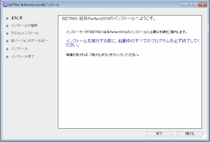 ・Windows版 「BIZTREK 給与Perfect2018」の文字をクリックします。
