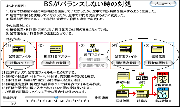 A: 初期メニューの「ファイルメンテ」→BSがバランスしないときの対処 1.4.5のメンテ処理をします。
