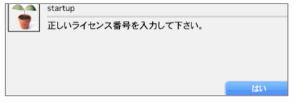 4.「正しいライセンス番号を入力してください」画面が表示された場合は、「はい」ボタンで進みます。