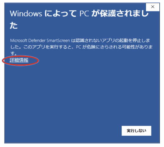 下図のウィンドウが表示されましたら、詳細情報」→=実行」ボタンの順にクリックします。