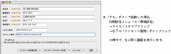 『会社情報登録』データに対してライセンスが発行されます。→[データベース・ライセンス]