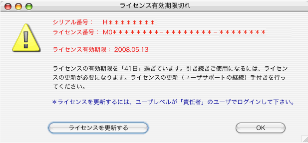 ライセンス有効期限切れのメッセージを表示します。