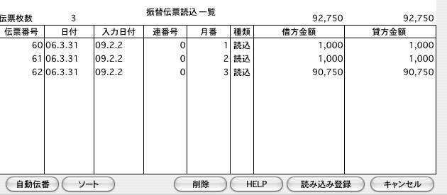 ※仕訳の訂正は、伝票読込み後、「伝票検索」画面で行います。