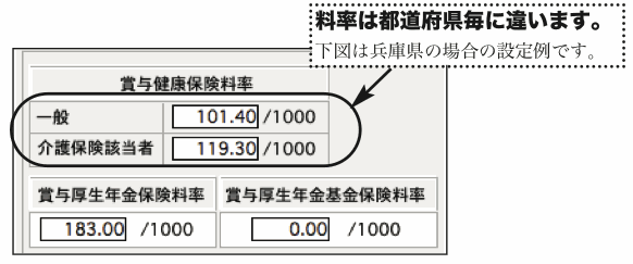 この説明書では、全国健康保険協会管掌健康保険(協会健保)兵庫支部の健康保険料率・介護保険料率に基づいて説明しておりますが、各都道府県により保険料率が異なりますので、ご注意ください。